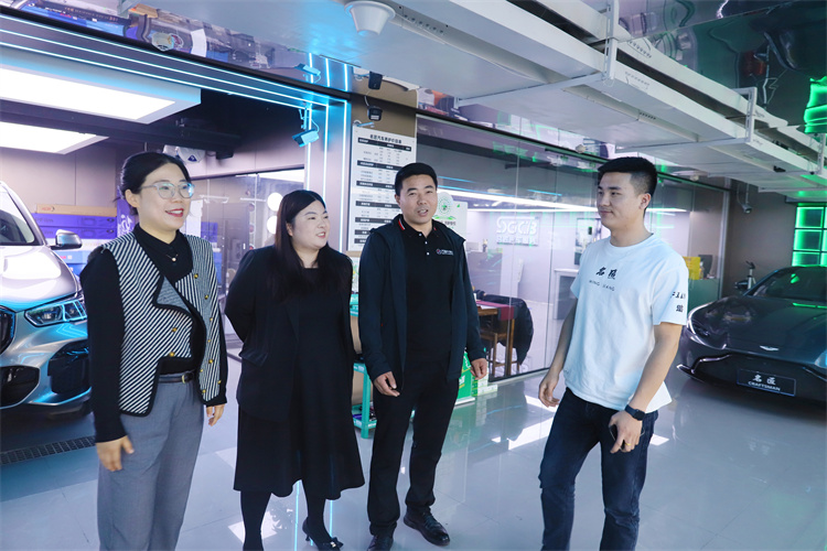 我校毕业学子杨东润是名匠汽车服务中心的创始人,在需学校学习的是汽车美容专业,从万通毕业后就与身边的朋友们一起开设了名匠汽车服务中心,目前年收入也非常的可观,在访谈中他讲到,见到母校老师他十分激动,没想毕业后学校老师还会来到他的就业企业一对一回访指导。工作以后他有了新的感悟和思考,趁此机会和郭主管进行了深入的交流。郭主管也在访谈中勉励他们要勤奋工作、拼搏进取,为企业做贡献,为西安万通争光,多回母校看看。