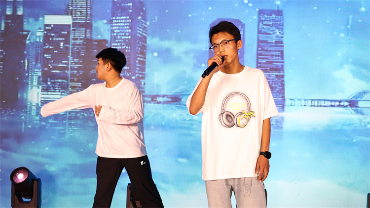 二、 节目纷呈,尽显青春风华 本次晚会节目形式多样,内容丰富多彩,充分展现了西安万通学子多才多艺、全面发展的精神风貌。 舞台上有青春的呐喊与激情。新能源2501班带来的创意舞蹈《洗牌》 ,以新颖的编排和富有张力的表演,展现了年轻一代的无限创意;VIP2501班的《架子鼓》表演,节奏铿锵,鼓点如雨,奏响了青春的豪迈与不羁;而霹雳舞表演者带来的《霹雳舞》 ,更是以高难度的动作和即兴的爆发力,将力量与柔韧完美结合,引来全场阵阵惊呼。